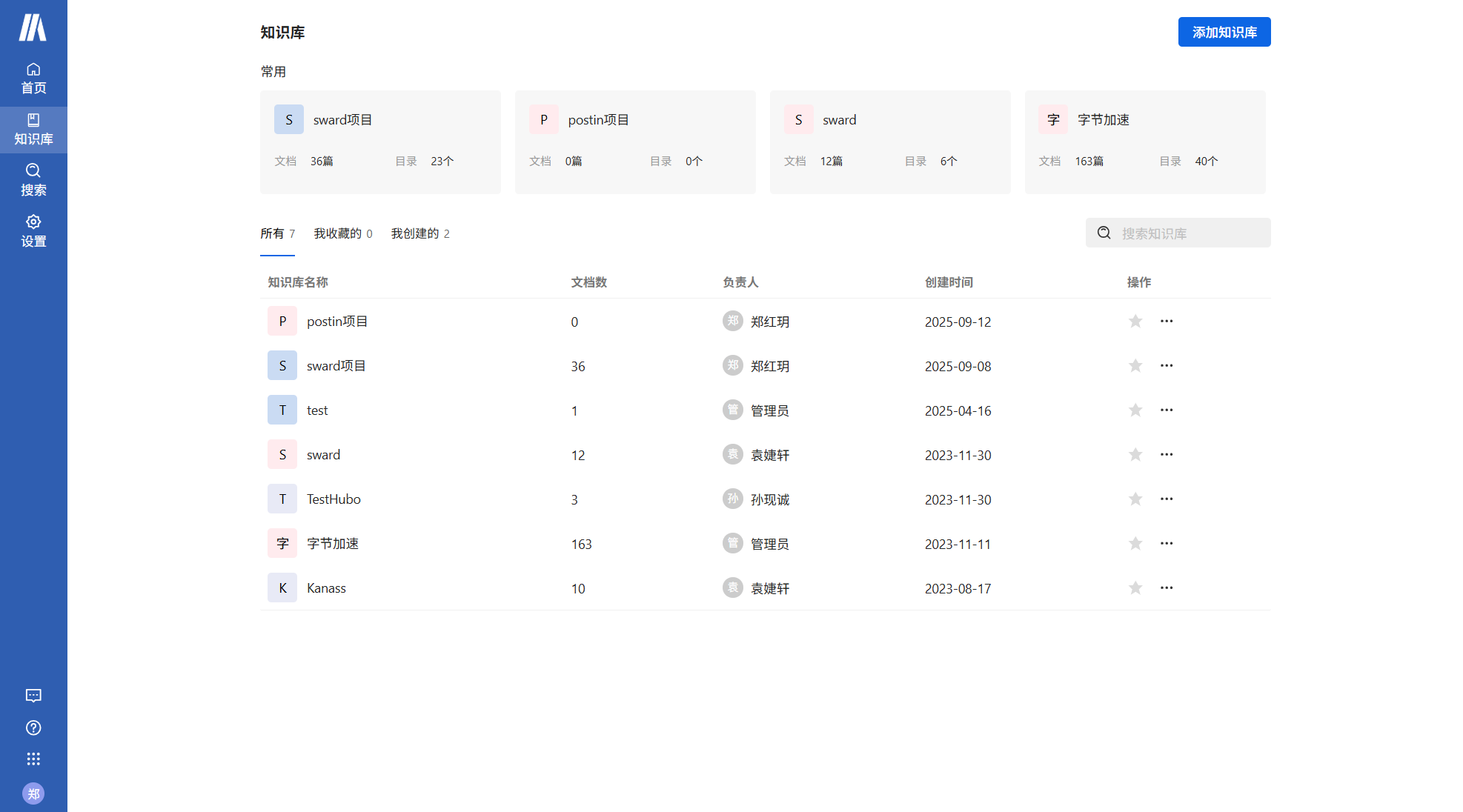 进入知识库把与知识库有关的用户加入项目,便于知识共创与共享