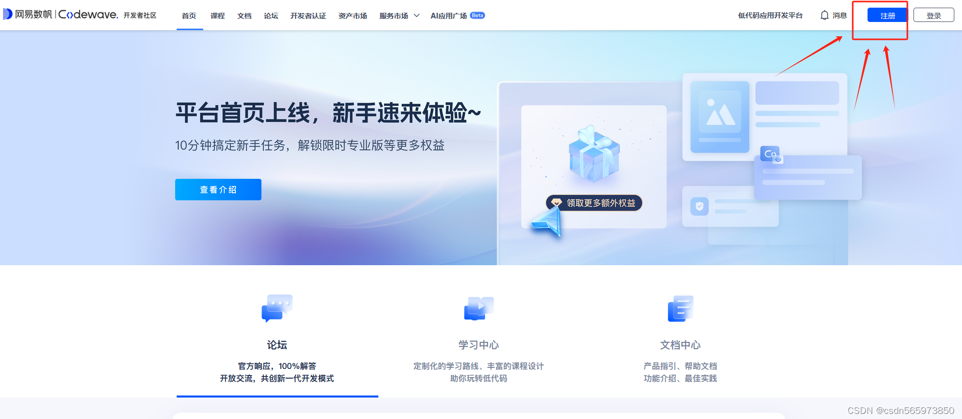 在开始使用CodeWave智能开发平台之前,你首先需要注册账号,CodeWave智能开发平台首页地址:https://community.lcap.qz.163yun.com/CommunityParent/CommunityIndex