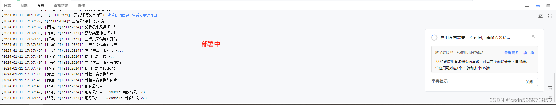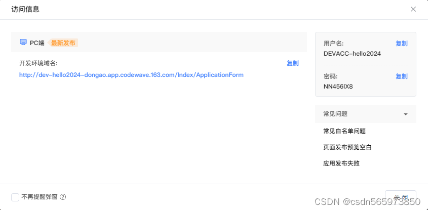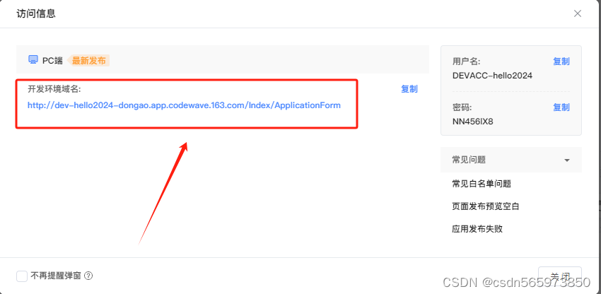 部署成功点击弹框中的【开发环境域名】
