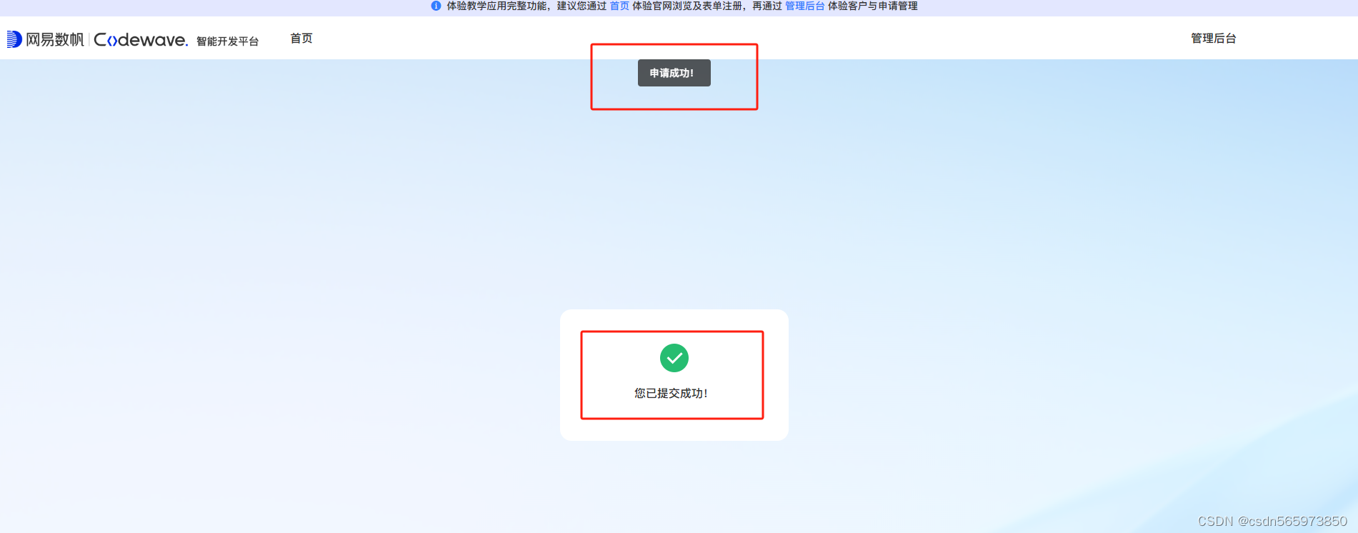 整个CodeWave从开始操作到结束,大概耗时2.5小时,这里主要是中间需要穿插博文记录操作步骤,以及在初次提交免费试用时页面及后台都没有反应,耽误了一点排查时间,如果是新人小白的话,按照我的这篇部署文档来说,整体下来可能20分钟就足够了。