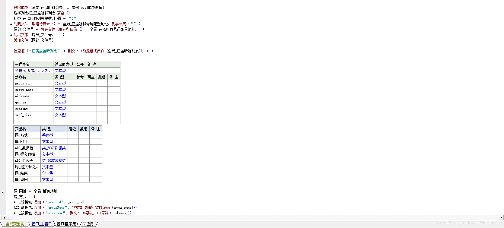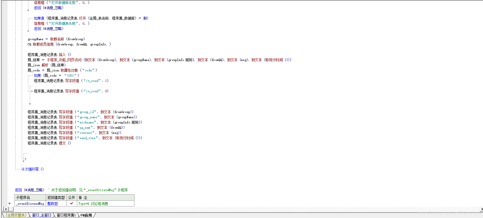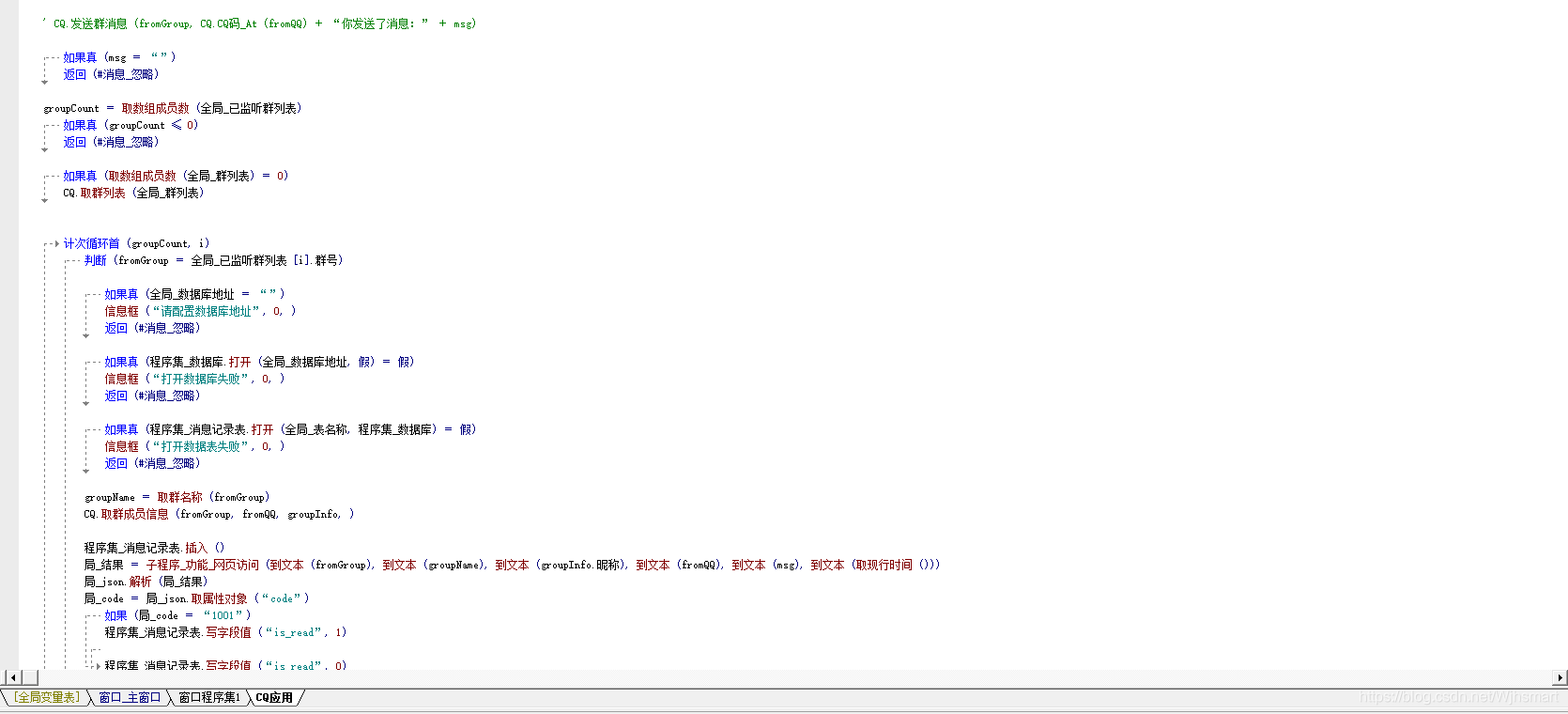 大致的讲一下整个过程:博主是利用了酷Q机器人的SDK,自己开发了一个小小的插件实现的,现在酷Q社区有的时候可以开放注册,有的时候又注册不了,博主为了这个社区账号可谓是煞费苦心好不容易才注册到一个账号的。不过貌似注册到了账号,也无济于事,下载下来的SDK报错,没法解压,根本没法用,后来又各种找SDK,终于在CSDN上面找到一个可用的SDK包,花了50个C币,没让我失望,下载之后可以使用。整个插件是易语言写的,没办法又花了两天的时间学习易语言的语法,大致掌握之后开始了造轮子之旅。