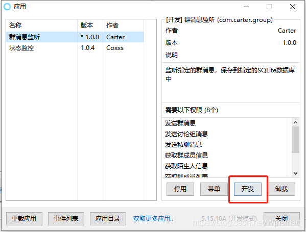 如果要打包插件,选中自己的插件,然后点击开发即可