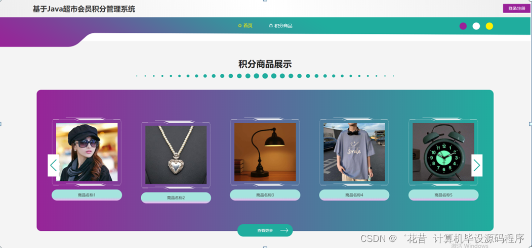 (1)用户登录权限,可以查看系统前台的积分商品信息,并进行兑换、备注或收藏操作,修改个人资料,还可以进入后台查询兑换记录信息等。
