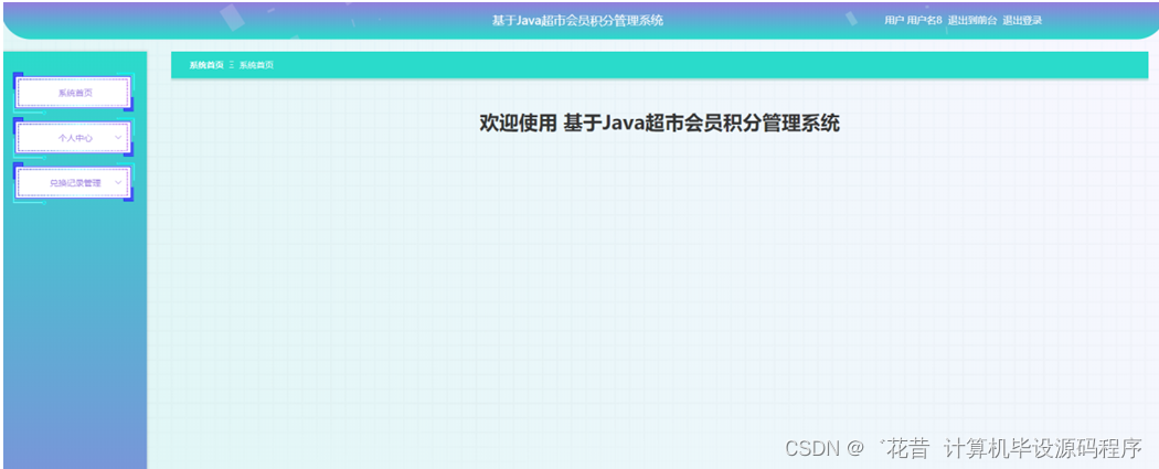 用户进入系统可以对个人中心、兑换记录管理等功能进行操作。用户主页面如图5-11所示: