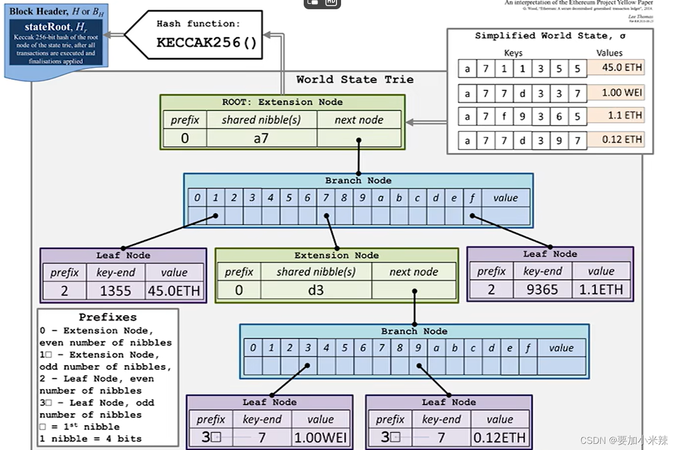 把普通指令换成哈希指令,也就是所有账户组成一个Patricia tree,用路径压缩提高效率,能够计算出一个根哈希值,写入区块头。