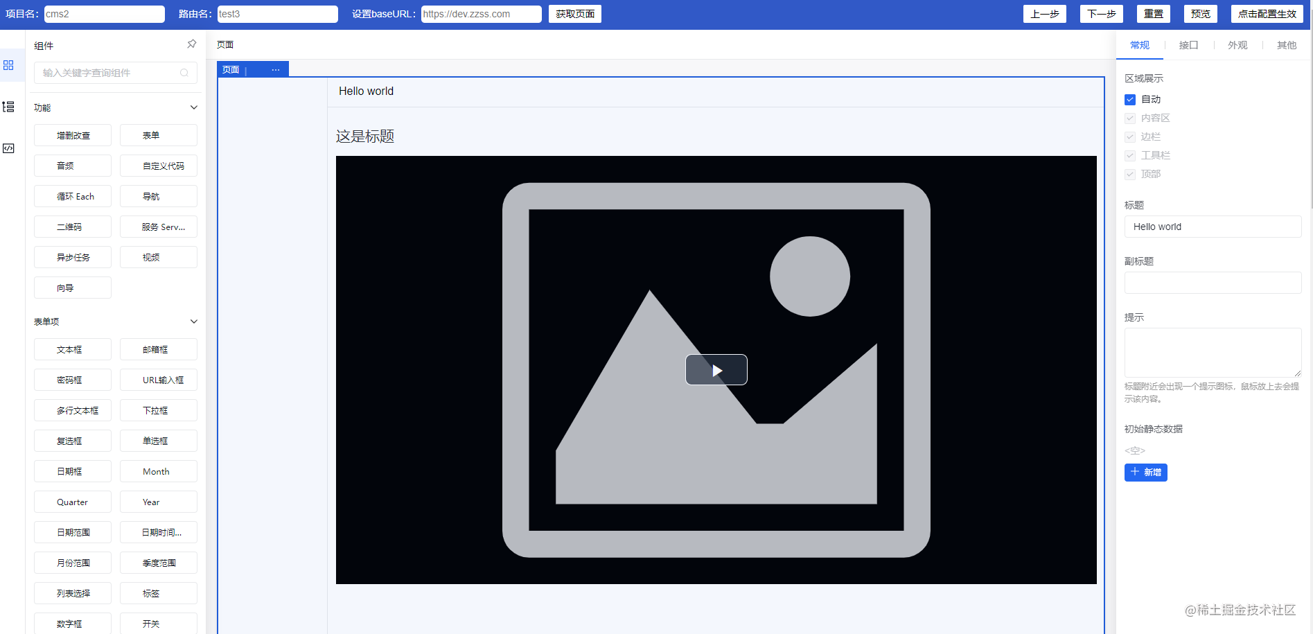 1.支持url路由跳转对应的配置页面2.支持历史记录修改3.支持预览4.支持重置5.支持配置更新前端lowcode页面(不用敲代码喽!!!)6.通过路由及项目名配置查询7.支持切换环境