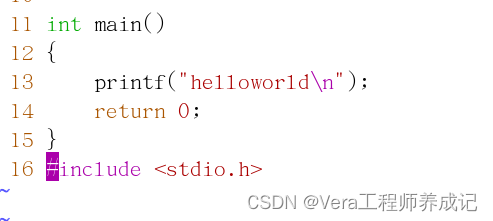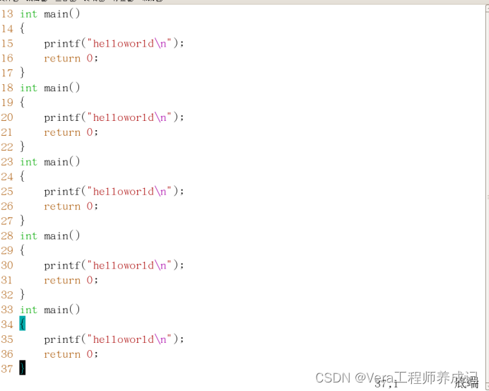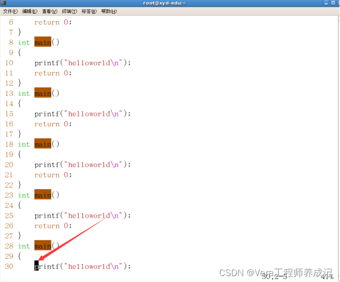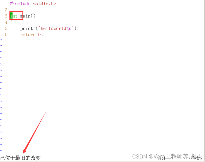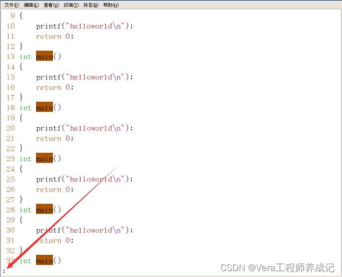 当你敲下回车时,就进入了hello.c文件,进来之后默认是命令模式。
