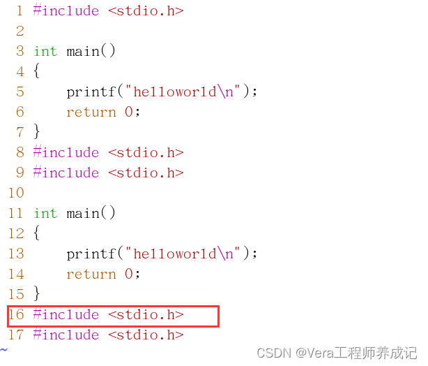 比如想要复制头文件,就把光标放在头文件所在行,按yy就复制好一行。