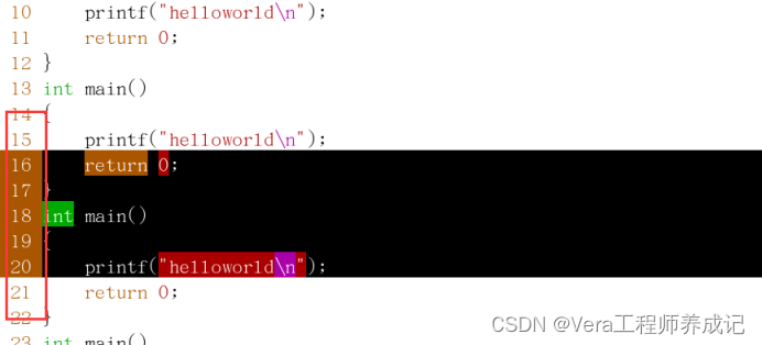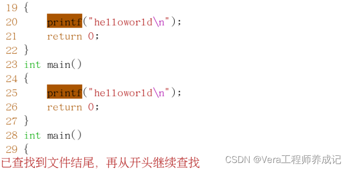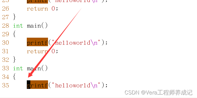 可以发现,光标调到下一个main的同时,它还用其他颜色标注出其他main的位置。