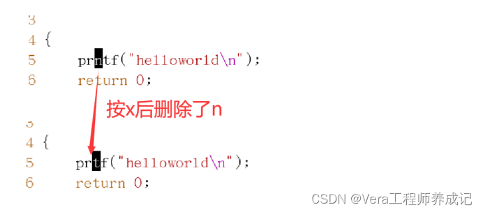 如果想要只删除一个字符,就把光标选中哪个字符就按x