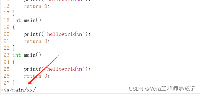 如果你想替换的话,比如你想把main替换成xx,可以在冒号底行模式下,输入“%s/main/xx/”