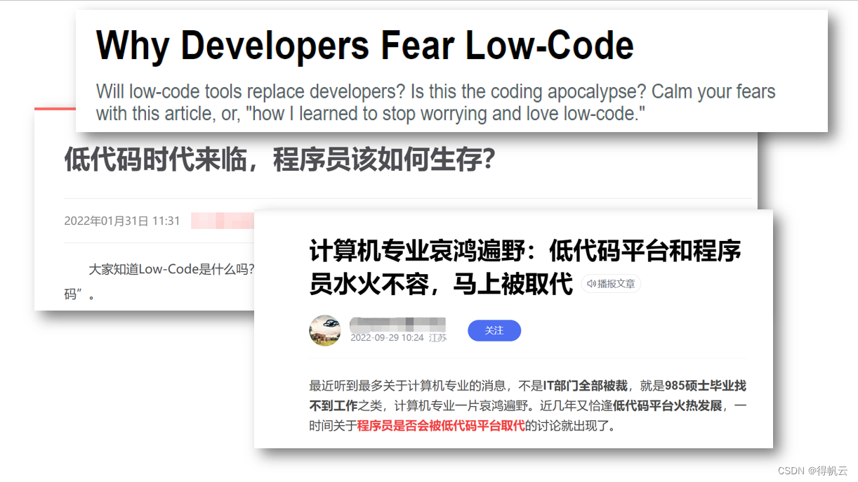 这就很离谱了,说白了,低代码是一种工具,程序员是运用工具的人,人和工具只有使用与被使用的关系,怎么会产生对立的关系呢?