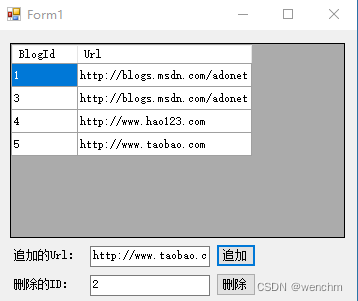 db.Blogs.Remove(new Blog { BlogId = Convert.ToInt32(textBox2.Text.Trim()) }); //删除记录按ID
