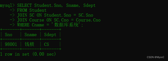 [4] 查询选修了课程名为“数据库系统”的学生学号、姓名和所在系。