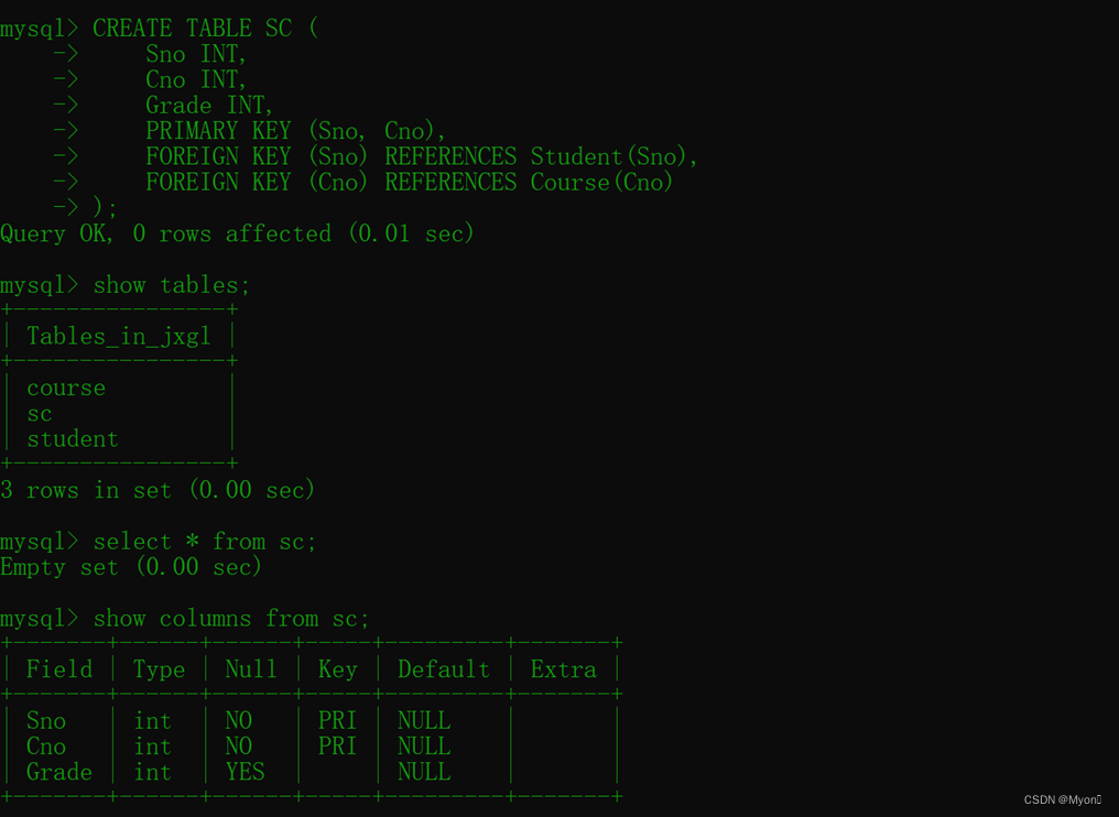 CREATE TABLE SC (