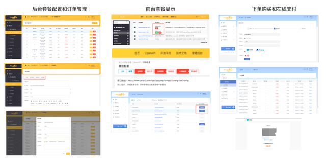 例如,在后台可以配置接口流量套餐、查看和管理订单;在前台有套餐的显示;在开放平台,开发者用户可以下单购买并在线支付;在API接口系统,已经预设好了智能的API计费功能。