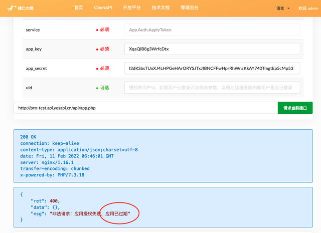 开发者在接口请求时,会提示:应用已过期。