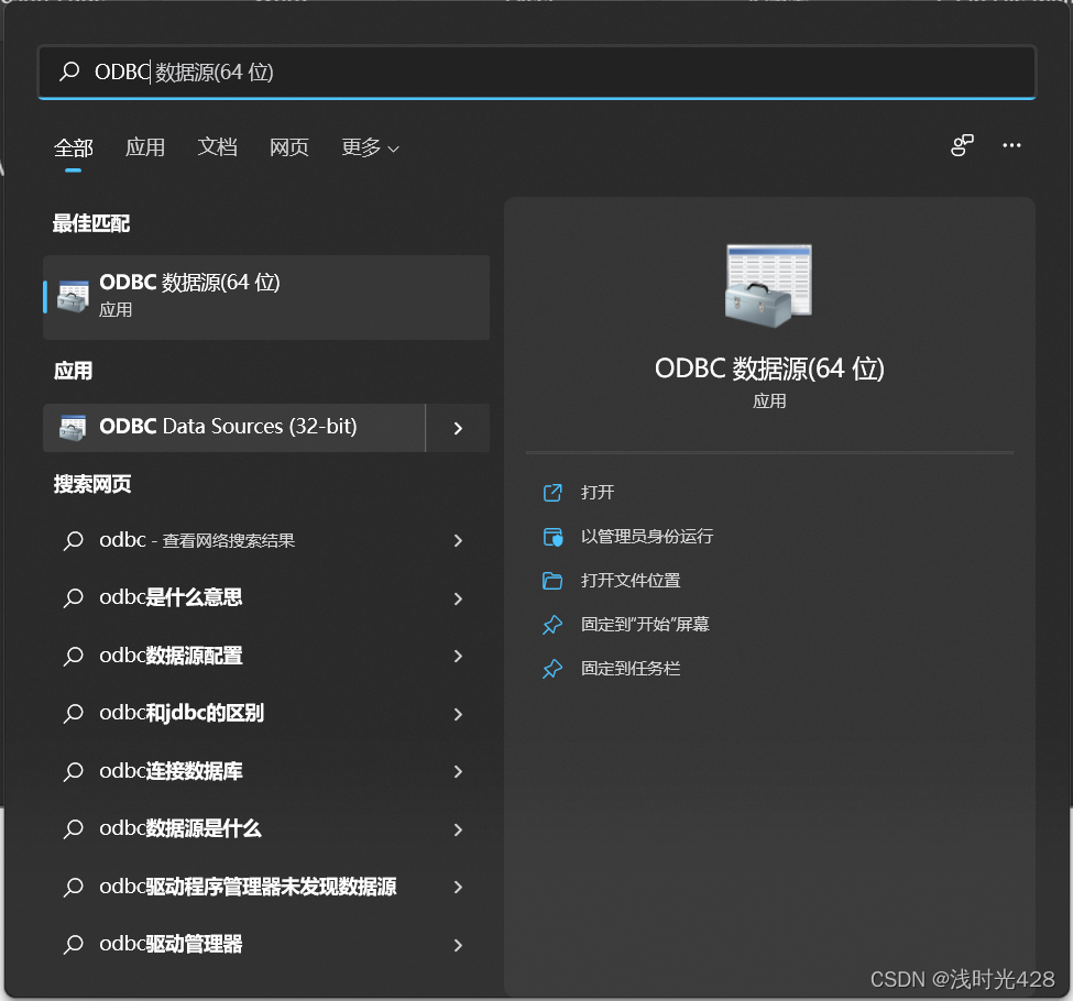 1)在搜索框搜索ODBC,选择对应的位数。本例以ODBC64位为例。