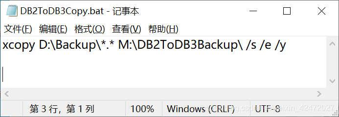 脚本命令:xcopy D:\Backup\*.* E:\DB1ToDB3Backup\ /s /e /y
