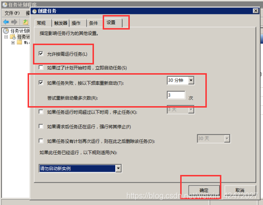 10、再选择设置---最后点击确定完成windows任务计划