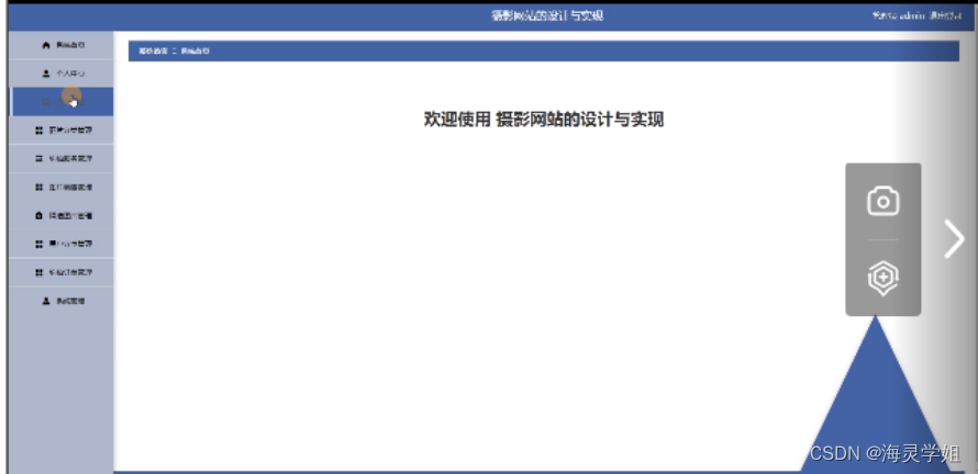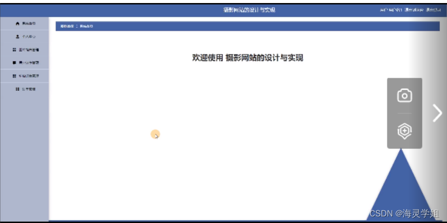 本次的毕业设计主要就是设计并开发一个摄影网站的设计与实现软件。运用当前Google提供的Spring Boot 框架来实现对摄影网站的设计与实现信息查询功能和用户分享等功能。当然使用的数据库是mysql。系统主要包括个人信息修改,用户管理、图片分类管理、约拍服务管理、图片销售管理、精选图片管理、用户分享管理、约拍订单管理、系统管理等功能;
