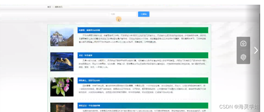 在摄影资讯页面的输入栏中输入标题进行查询,进入专题信息页面可以查看摄影资讯详细信息;摄影资讯页面如图5-4所示: