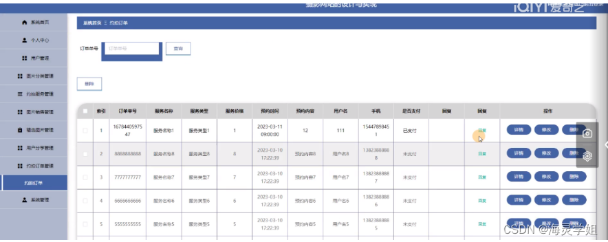 图5-13约拍订单管理界面