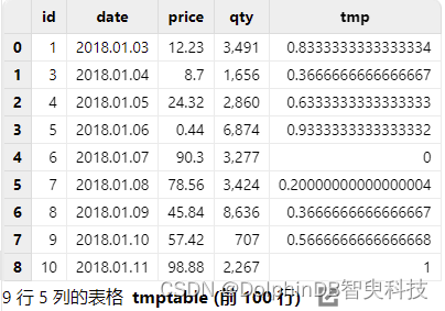 - 对 tmp 列进行 Max-Min 归一化,将数据缩放到0到1的范围。