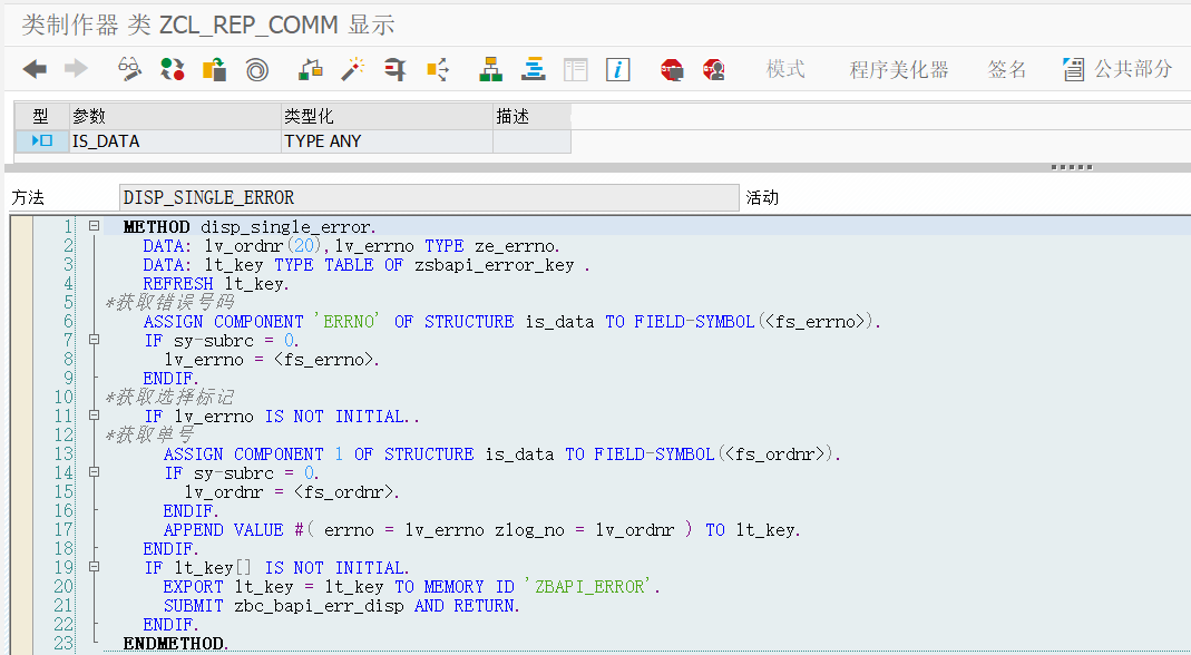 整合在类方法中去调用程序zbc_bapi_err_disp呈现报错信息