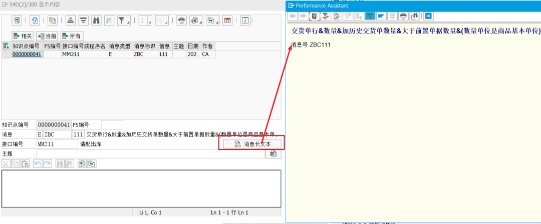 在程序中根据选中行的消息ID,消息号调用函数Z_BC_KNOW_MODIFY查询并记录知识点