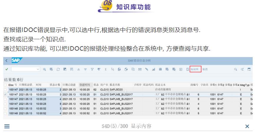 介绍过知识库功能, 该功能与接口IDOC增强监控程序整合,辅助用户按报错消息记录并查询错误信息.提高报错的处理效率.