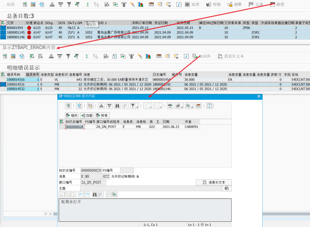 双击后通过错误ID读取ZTBAPI_ERROR中的内容.