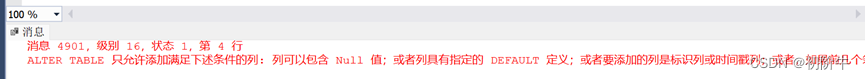 出错原因:该表里已经有数据了,所以再添加字段时,已经有的数据该字段应该是空,但是我们添加字段时设定的是非空,所以就矛盾了,报错了。
