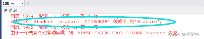 还记得,上面我们在添加stature列的时候设置了约束条件,此时若要删除该列就必须先删除约束条件,所以我们应该先找到约束条件再删除.