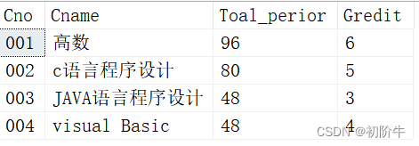 insert into course values ('003','JAVA语言程序设计','48','3');