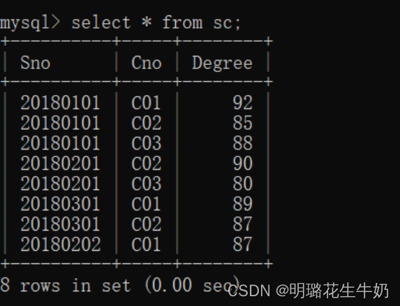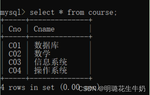 首先我们已经看过了sc表里没有课程名称这个属性,这个属性在course表里: