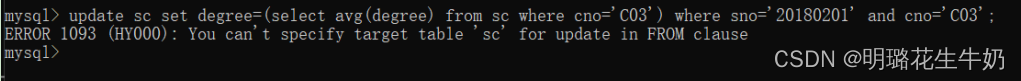发现这种错误,但是逻辑上没有错误呀,这就是MySQL不同于其他数据库的一个地方。MySQL不允许从被更新的表中拿出数据来更新此表。