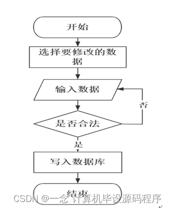 在进行数据更新时,必须要有一个惟一的主关键字,以便数据库能够查询到相应的数据;另外,还必须遵守数据插入过程的操作规范,以确保数据的正确性。修改信息流程图如图3-8所示。