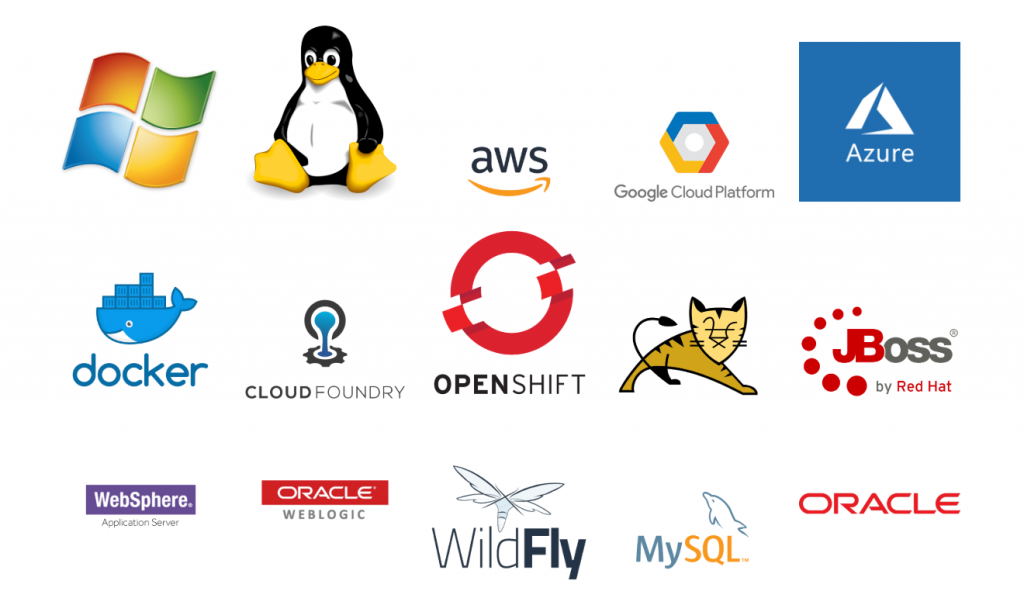 Works with Various Cloud Platforms, Application Servers, Databases and Operating Systems