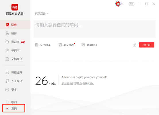 这里,我们介绍有道词典软件中十分有用的一个功能“划词”,就可以快速得到中文翻译。