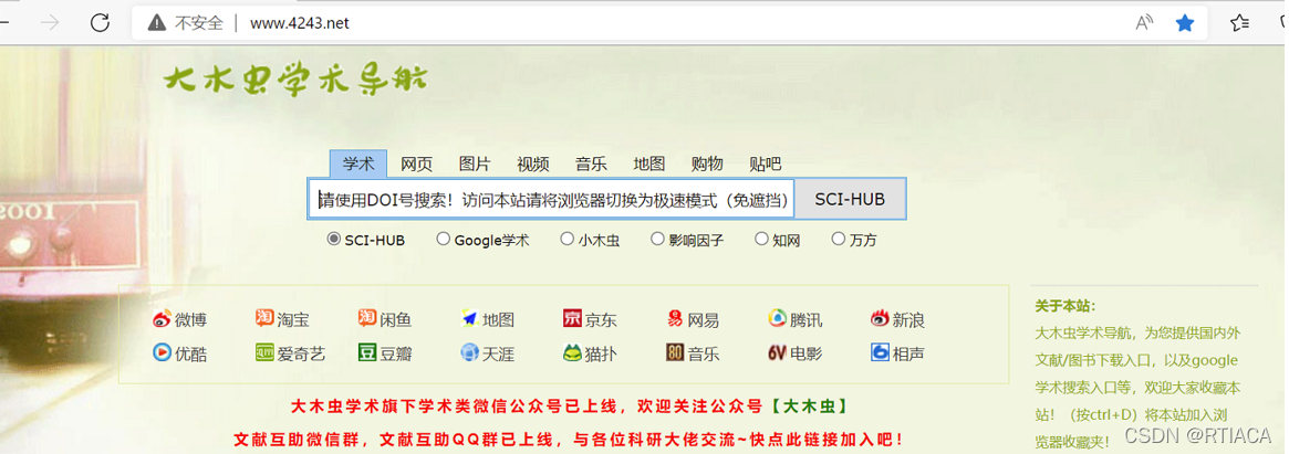 这里我们再介绍一个神奇的网站——大木虫学术导航,这里是各种学术网站的汇总,不仅有文献下载,还有课题申请,文献翻译,在线降重等。