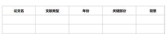 在泛读过程中,我们还可以利用表格记录,确定每篇文章我们可以学习的地方是什么,启示是什么。表格中重点写好“论文名”以及“关键部分”,方便以后文献查找以及让我们快速回忆出文章的启示点是什么。