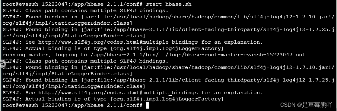 在命令行输入start-hbase.sh来启动HBase,接着输入jps查看是否启动成功,出现了HMaster进程即表示启动成功了。