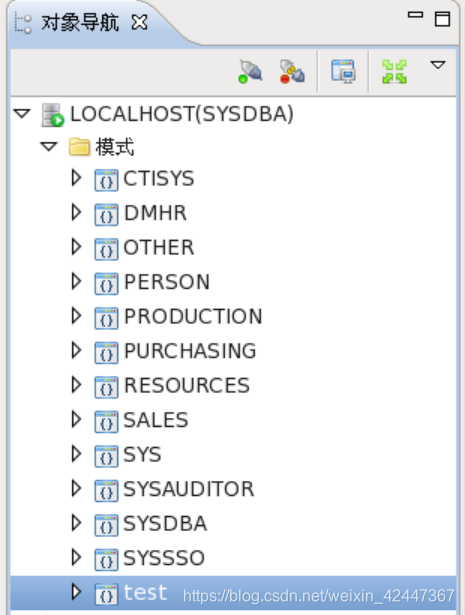 manager工具,窗口➡视图➡对象导航,在弹出的对象导航中,点击模式,即可看到所有的模式名字信息,点击模式的名字,可以看到定义模式可以包含的内容:比如表、视图等