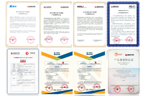 兼容市面上国产的绝大多数CPU、国产操作系统、国产中间件、国产数据库、国产文件管理等,获得国产软硬件厂商的一致认证。