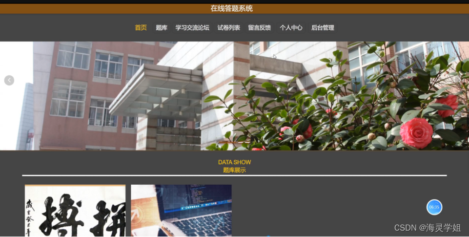 在线答题系统,在系统的首页可以查看首页、题库、学习交流论坛、试卷列表、留言板管理、个人中心、后台管理等信息,如图5-1所示。