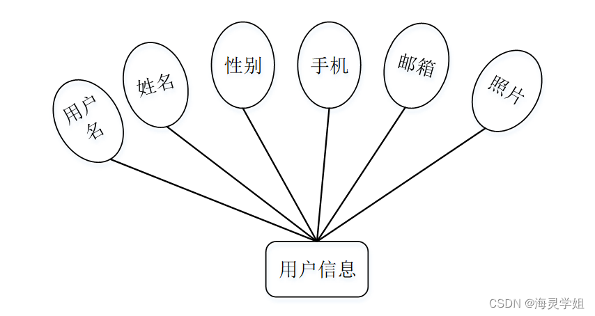 用户信息主要包括用户名、姓名、性别、手机、邮箱、照片等属性,用户信息属性图如图4-5所示。
