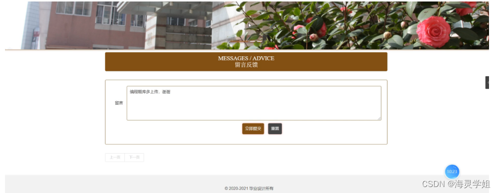 留言板管理,在留言板管理页面中通过输入留言内容并立即提交,如图5-5所示。