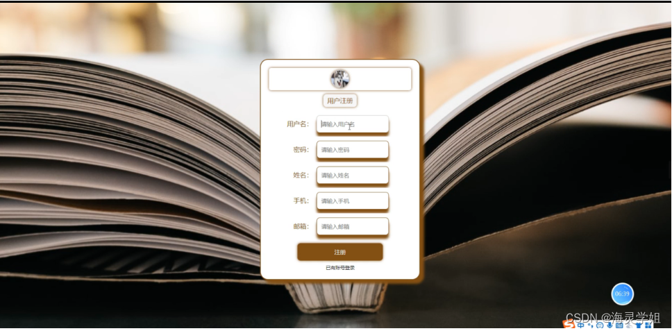 用户注册,在用户注册通过填写用户名、密码、姓名、手机、邮箱等信息完成用户注册,如图5-2所示。