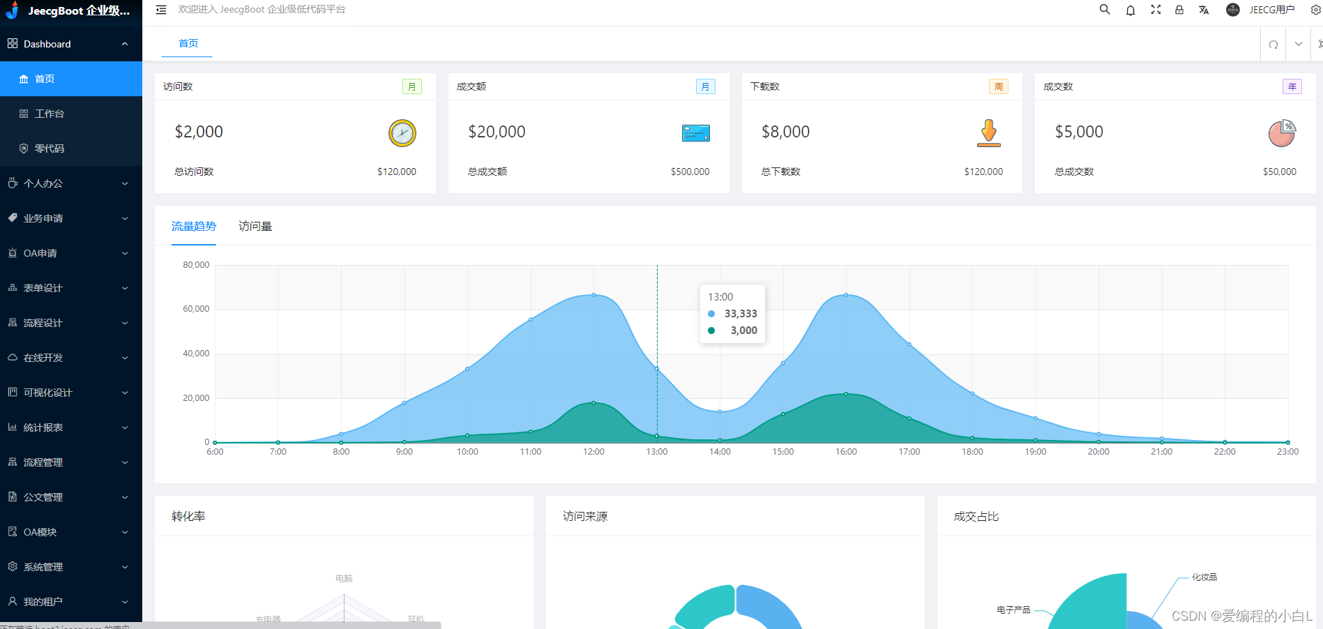 详情可参考jeecg官网JEECG官方网站 - 基于BPM的低代码开发平台(低代码平台_零代码平台_工作流平台优秀服务商)